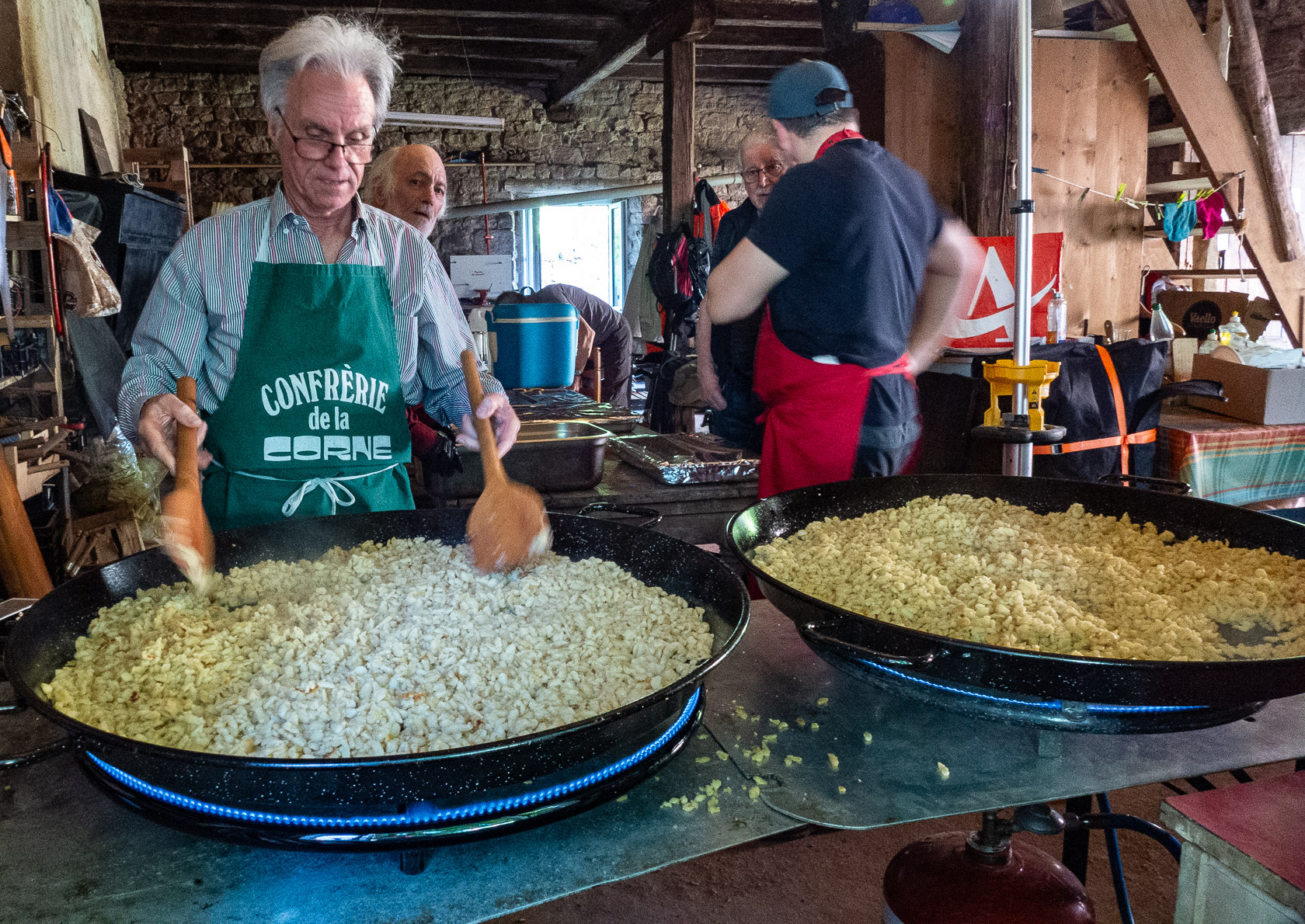 Préparation sur place des spaetzle du repas sanglier, par la Confrérie de la Corne !