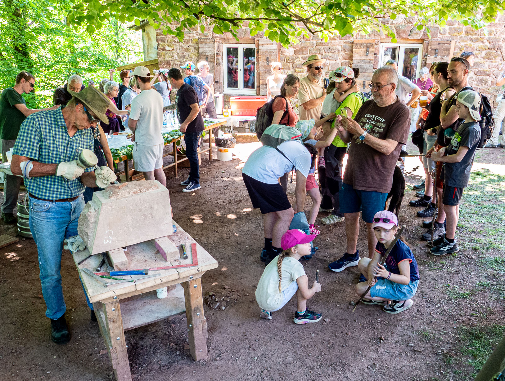 La démonstration de taille de pierre à bossage par Jean-Marc.